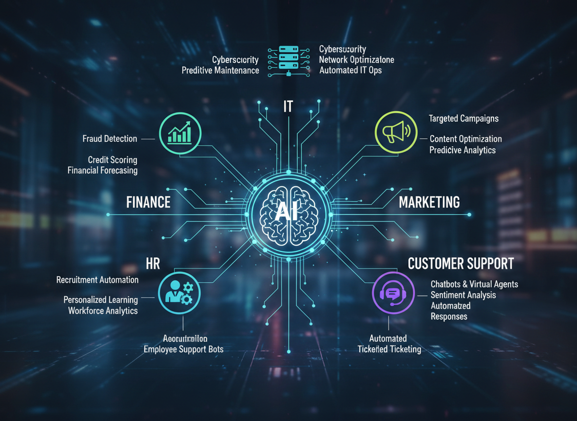 In HR, AI supports resume screening, employee engagement analysis, and workforce planning. These systems analyze patterns across hiring and performance data to support more informed HR decisions.